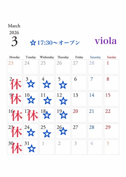 viola 3月の営業日
